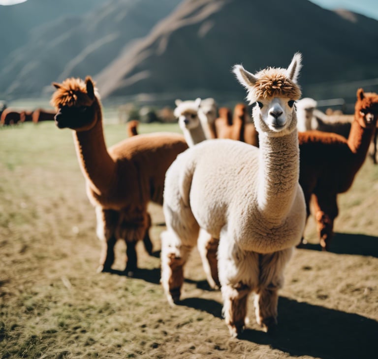 Spalvos: Alpakos būna įvairių spalvų, įskaitant baltą, juodą, ruda, pilką ir net šafrano spalvą.