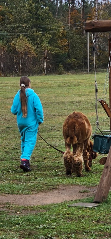 Siūlome paiškylauti mūsų ūkyje tik jūsų kompanijai be pašalinių žmonių- tai privatus laikas laisvai vaikščiojančių alpakų, ožkelių ir gamtos apsuptyje.