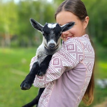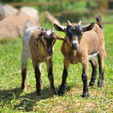 Mini ožkytės - Gilė, Mėta, dvynukės Penelopė ir Anabelė -linksmos ir aktyvios, labai mėgsta žaisti ir tarpusavyje išbandyti ragelius, niekad neatsisako skanukų.